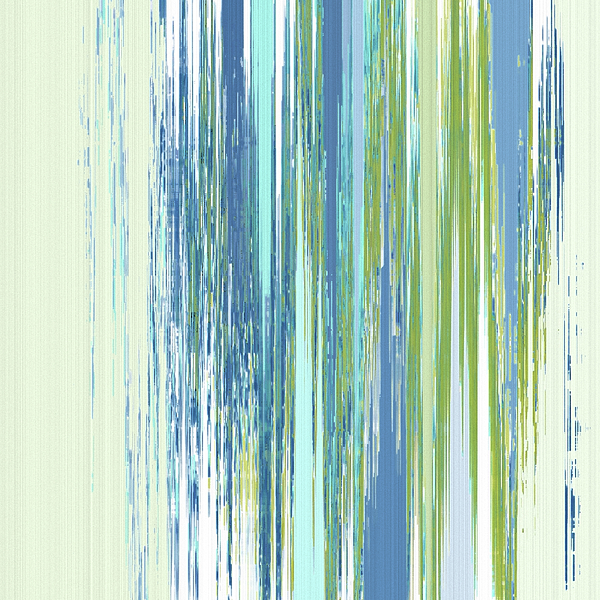 RAINY STREET. Linear pattern of blues and greens evokes the blur of a city street in a downpour. Abstract in series based on a common color palette.... more