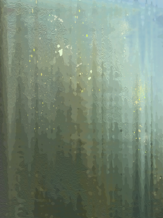 SPIRES THROUGH A WINDOW. 2017. Blurry view thru a translucent window—maybe the spires and crenelations of gothic architecture on a early winter... more
